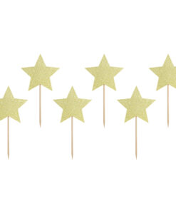 Cupcake toppers – Stars, gold, 11.5cm: 1pkt/6pc.