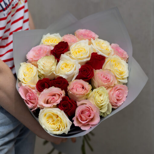 25 mix roses Ecuador 50 cm + 3 eucolyptus