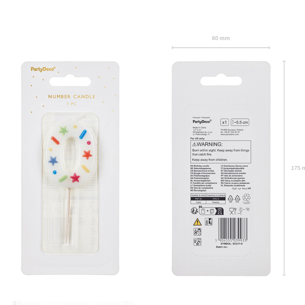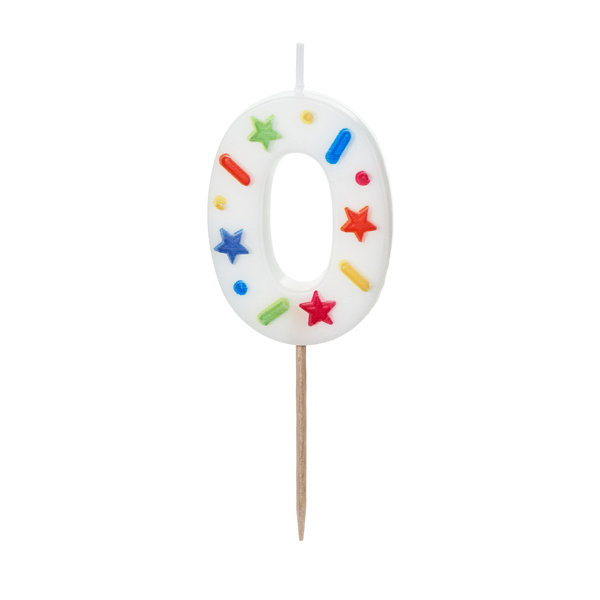 Birthday Candle Number ‘0’, white confetti, 5.5cm