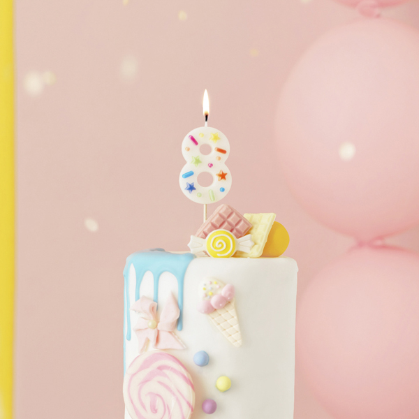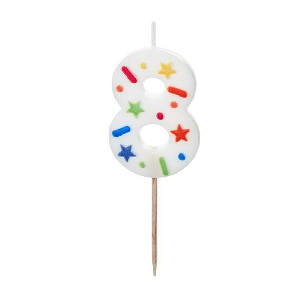 Birthday Candle Number ‘8’, white confetti, 5.5cm