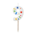 Birthday Candle Number ‘9’, white confetti, 5.5cm