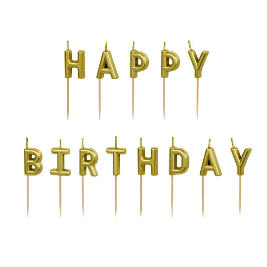 Birthday candles Happy Birthday, 2.5 cm, gold: 1pkt/13pc.