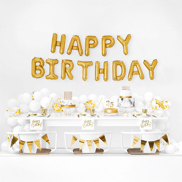 Foil Balloon Happy Birthday, 340x35cm, gold