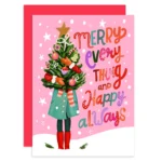 Christmas Card Woman with Christmas Tree Merry Everything Happy Always