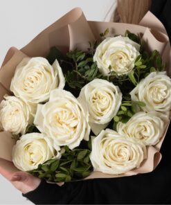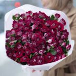 A luxurious classic bouquet of purple spray roses, height 35–50 cm. Each bouquet includes a complimentary greeting card and flower food to help extend the life of the roses. The recommended number of flower food sachets per bouquet is 3.