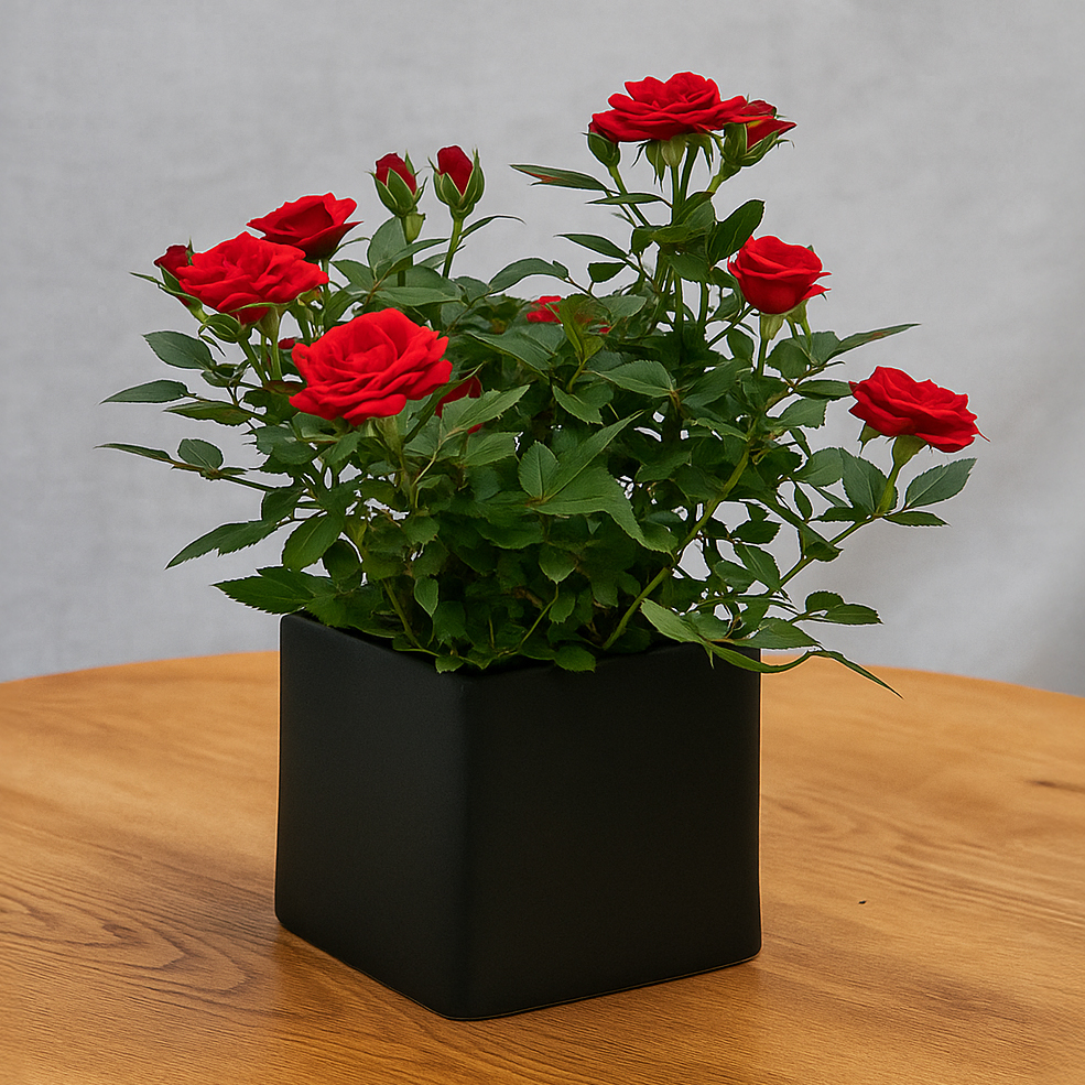 Rose in a pot, height: 30 cm, a choice of colour schemes (red, yellow, orange, white, pink) is available. All plants ordered in our shop are delivered in gift packaging.